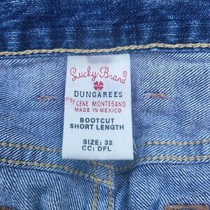 For sale are these Lucky Brand Men's Bootcut Dungarees Jeans Size 32 Regular Length Blue Denim Made. Jeans are in excellent condition! No holes or stains!