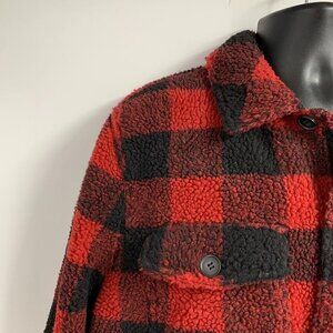 Lucky Brand Men's Buffalo Check Faux Shearling Shirt Jacket Size L