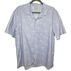 Lucky Brand Mens Button Up Short Sleeve Blue with Palm Tree Print XL 100% Cotton