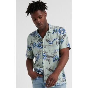 Lucky Brand Mens Hawaiian Tropical Button Front Shirt Size XL Blue Vacay Cruise