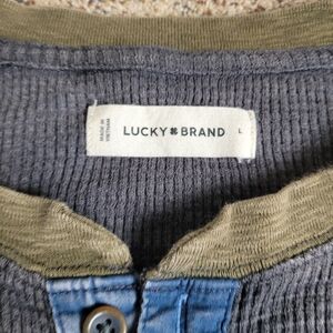 Lucky Brand Mens Henley Waffle Knit Cotton Long Sleeve Shirr Size Large