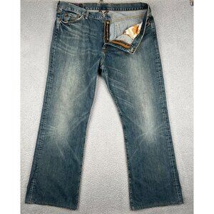 Lucky Brand Mens Jeans 38x33 Distressed Blue Dark Wash Stretch Denim Whiskers 🍀