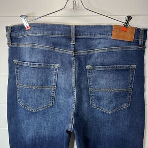 Elevate your style with these Lucky Brand men's jeans in a medium blue color. These 410 Athletic Straight jeans feature a 5-pocket design and a zip closure. The jeans are made of a blend of cotton, polyester, and spandex, making them both comfortable and durable.