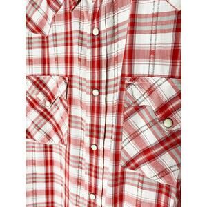 Lucky Brand Men's Pearl Snap Button Up Shirt Western Rodeo Red White Plaid Cotton
