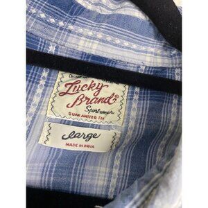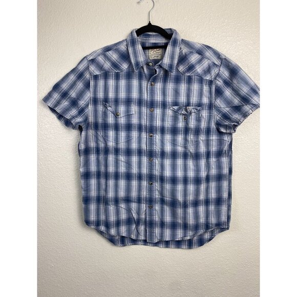 Lucky Brand Mens Shirt size Large Blue Plaid Snap Short Sleeve Cotton Classic western Rodeo Summer Vacation