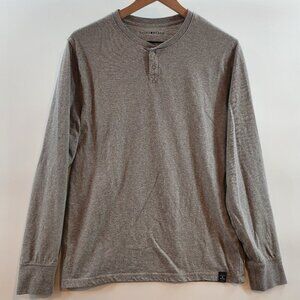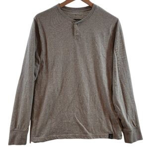 Lucky Brand Men's Three Snap Button Henley Long Sleeve Shirt Grey Stretch Preppy