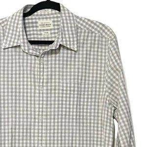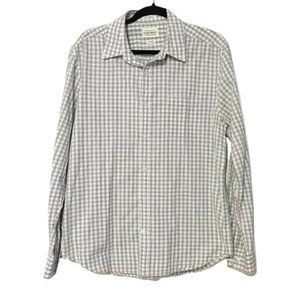 Lucky Brand Men's White Label Fit Gray & White Plaid Button Down Shirt