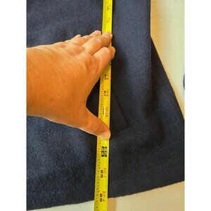 This medium navy wool jacket provides warmth and style with functional pockets, a button front, and a timeless design for versatile use.
