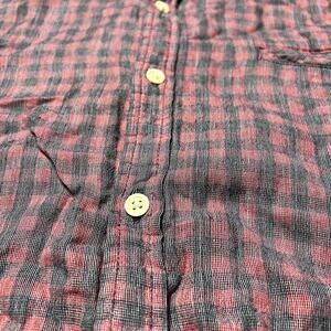 Lucky Brand men's short-sleeve button-down shirt in a classic California fit. This shirt features a plaid design in red and gray tones, a single chest pocket, and button closure. Made from 100% lightweight cotton, perfect for casual or semi-casual wear. Size XXL, made in India.