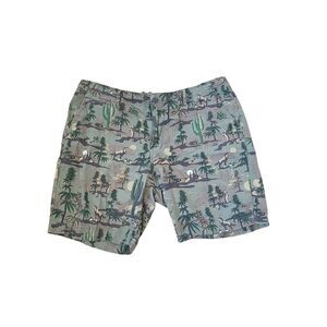 Lucky Brand Men's 9" Laguna Cotton & Linen Blend| Flat Front Short, Green Camo Desert Design | 38| EUC | MSRP $59 | Measurements Laying Flat and Unstretched: Waist 19.5" | Rise 12" | Inseam 9" | Replacement buttons on the inside