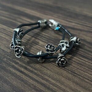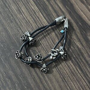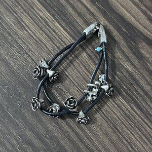 Bracelet is pre-owned, so please check photos for condition. Sadly only has two of the three black straps. May have dust caught in the roses or signs of age. Showing age and wear such as marking, etc. Lucky Brand jewellery tends to look intentionally aged.