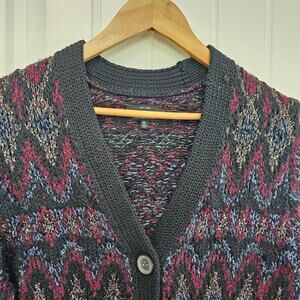 Lucky Brand Metallic Cardigan Women Medium Purple Knit Fair Isle Whimsy Goth Chunky