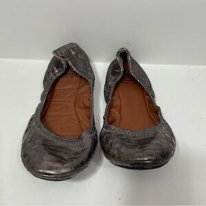 Gently worn women’s size 6 Lucky Brand Silver Metallic snakeskin ballet Flats. Please review all photos for any signs of wear-pictured as is. Disclaimer: Any items with any wear/staining has not been treated, and unsure of ability to remove/treat condition. Comes from a smoke free home, bundle with other items to save & minimize shipping cost.