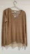 Lucky Brand Metallic gold Beige V-Neck Sweater w Crochet Detail linen mix M new