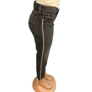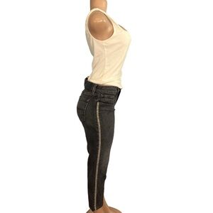 Lucky Brand Mid Rise Boyfriend Sienna Cropped Jeans Black with gems along the side. In size 26.