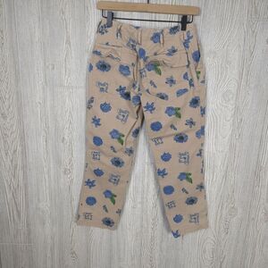 Lucky Brand Mid-Rise Utility Capris Ankle Length Tan Blue Floral Design Sz 26