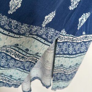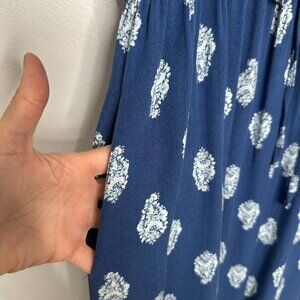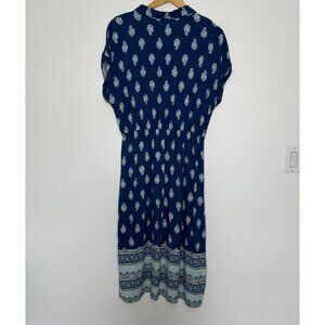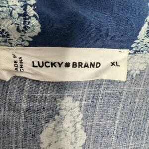 Lucky Brand Midi Dress Size XL Blue Floral Short Sleeve Floral Pockets