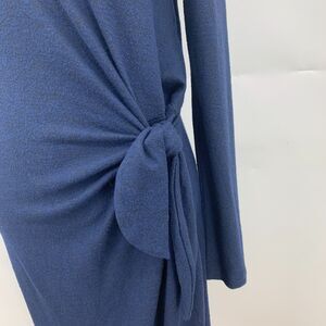 LUCKY BRAND MIDI DRESS WOMENS XS NAVY BLUE STRETCH V NECK LONG SLEEVE SIDE KNOT