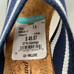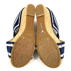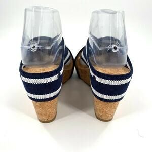 Lucky Brand Miller Cork Wedge Sandals Fabric Striped Blue White 7.5