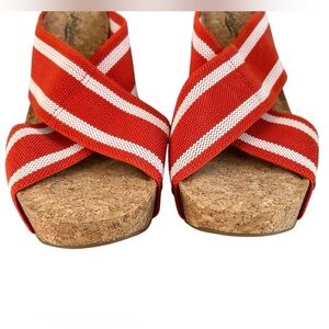 Lucky Brand Miller Platform Orange/White Stripe High Cork Wedge Sz 10