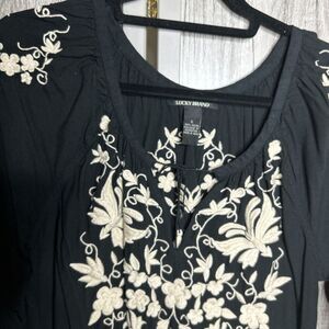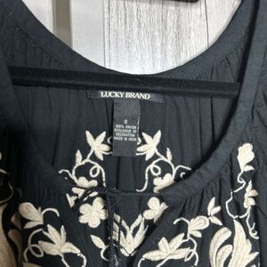 Lucky Brand Mini Dress Tunic Embroidered Bohemian Black and Ivory Size S