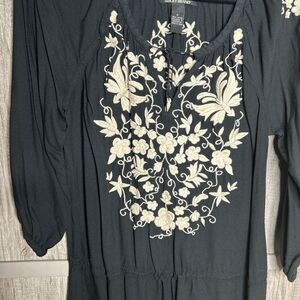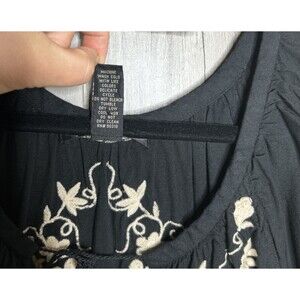 Lucky Brand Mini Dress Tunic Embroidered Bohemian Black and Ivory
