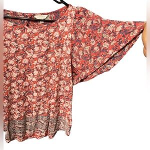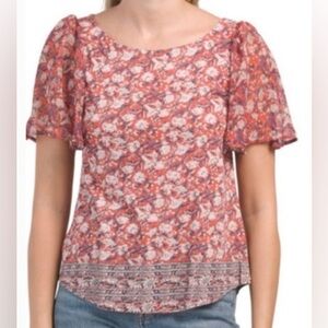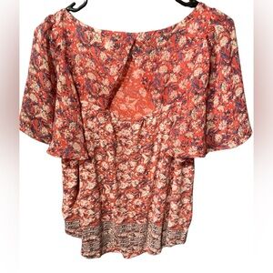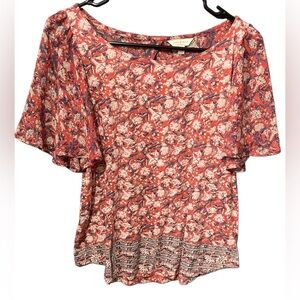 Lucky Brand Tops | Lucky Brand Mixed Media Flutter Sleeve Floral Lightweight | Color: Orange Size:M