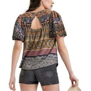 Lucky Brand Mixed Media Flutter Sleeve Top, Medium Style 7W64640