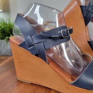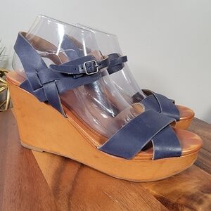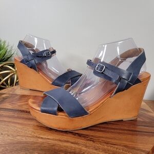 Lucky Brand Modille Blue Leather Wedge Sandals Size 9.5