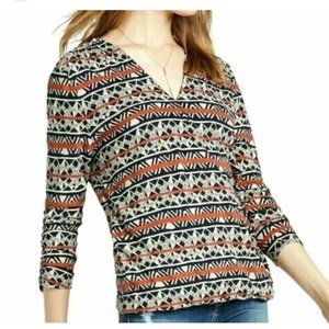 Lucky Brand Multi Colored Aztec print wrap top with 3/4 ruched sleeves