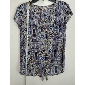 Abstract, Boho, Chic, Casual, Festival, Lightweight, Lucky Brand, tie front top, cap sleeve blouse, abstract print, boho chic, casual top, button front shirt, Lucky Brand medium, festival fashion, summer top, Lucky Brand tie front shirt, Boho button front summer top,