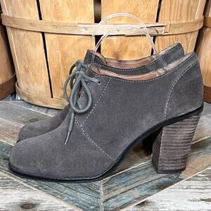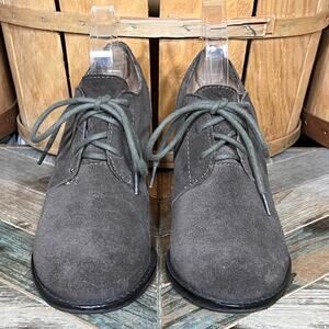Lucky Brand Mystique Olive Green Suede Lace-Up Oxford Ankle Booties Women Size 8