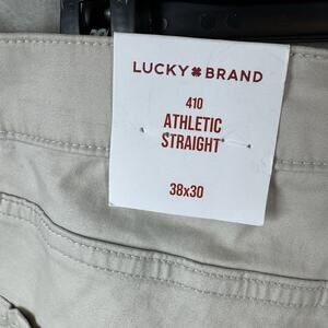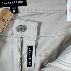 Lucky Brand NEW Mens Pants 410 Athletic Straight 38X30 Beige Stretch Button Zipper Closure Logo Flat Front 5-Pocket Design Cotton Elastane