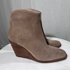 Lucky Brand NEW Waltz Suede Wedge Tan Taupe Ankle Bootie Boots Size 7.5