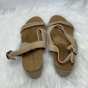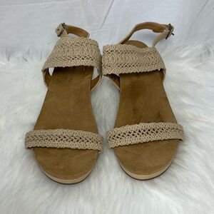 Lucky Brand NWOT Koenn Tan Crochet Wedge Sandals Sz 9