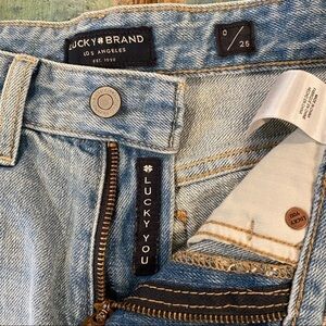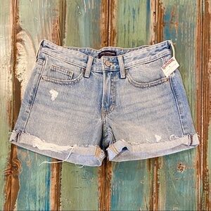 Lucky Brand NWT Boyfriend Shorts Denim Cuffed Mid 9” Rise Distressed Sz 0 (25)