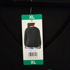 Lucky Brand NWT Cotton Blend V Neck Jet Black Sweater Capsule Wardrobe Size XL