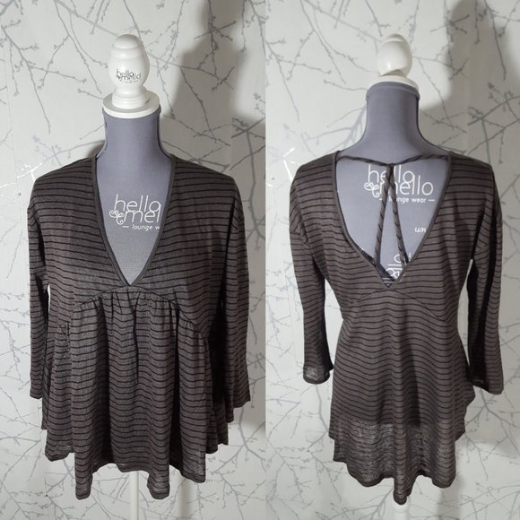 Lucky Brand NWT Gray Striped 100% Linen Babydoll Blouse