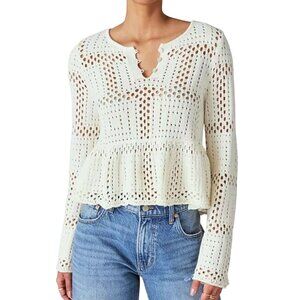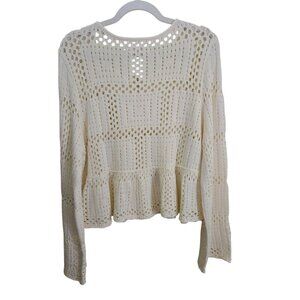Lucky Brand NWT Open Stitch Peplum Long Sleeve Sweater Cream Size XL