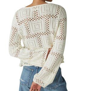 • NWT 2022 Crochet Open Knit Bell Sleeve Bohemian Sweater