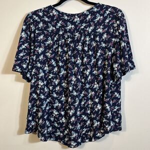Lucky Brand NWT Women Top Blue Red White Flowers Short Sleeve Button Front Small
