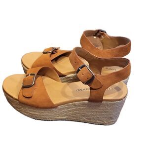 Lucky Brand Naveah Platform Wedge Espidrille Stacked Sandal Dark Tan Peanut 7