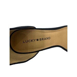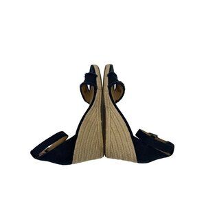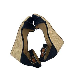 Lucky Brand Navy Blue Canvas Espadrille 3 Inch Wedge Sandals Size 9