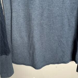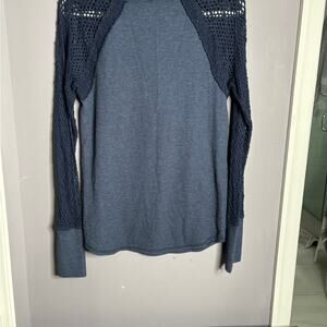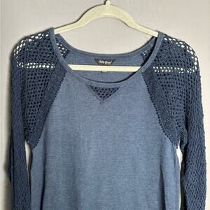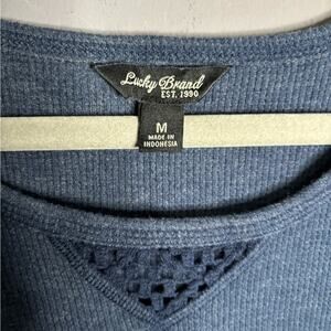Lucky Brand Navy Blue Ribbed Long Crochet Sleeve Top Size Medium