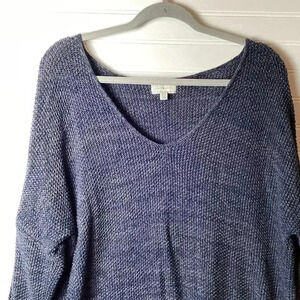 Lucky Brand Navy Blue cotton V Neck Mesh knit Top Pullover Size Medium