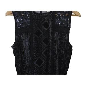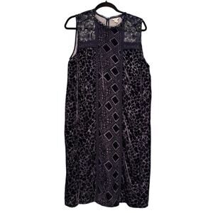 Lucky Brand Navy Burnout Crushed Velvet Navy Dress Sleeveless Small