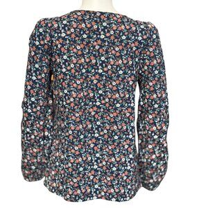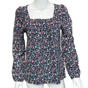 Lucky Brand Navy Floral Long Sleeve Blouse Square Neck Cotton/Modal Womens S/P