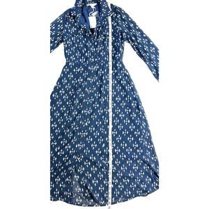 Lucky Brand Navy Medallion Button Front Long Sleeve Shirt Dress Size 4 NWT