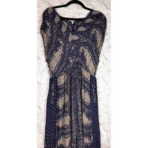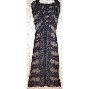 Elegant maxi dress with intricate patterns. Features a V-neck and short sleeves. Perfect for casual outings.