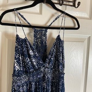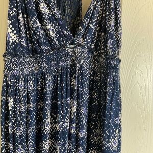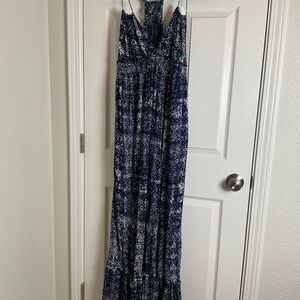 This elegant navy and white maxi dress is perfect for any occasion. Its stylish design and comfortable fit make it a must-have in your wardrobe.